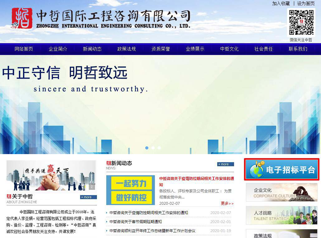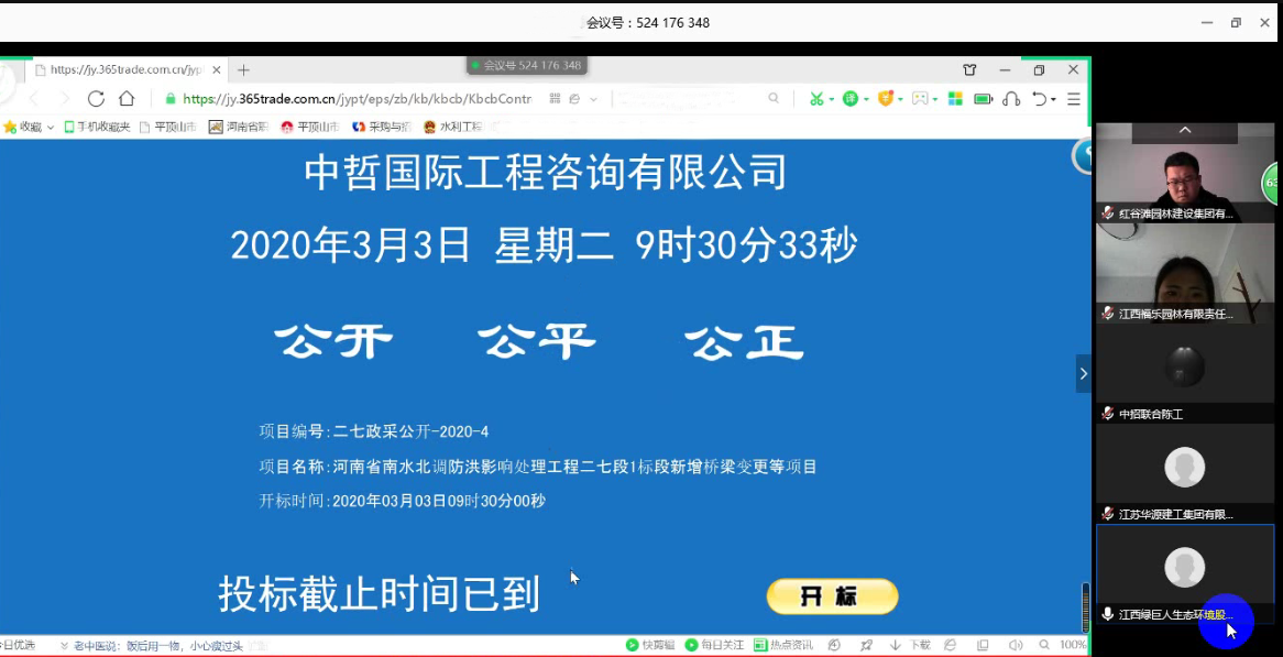 2020年3月3日,中哲国际工程咨询有限公司顺利完成郑州市二七区农委“河南省南水北调防洪影响处理工程二七段1标段新增桥梁变更等项目”的“远程不见面”开评标工作。在疫情防控时期,首个全流程电子化招标采购项目的顺利实施,对中哲咨询具有里程碑意义。同时,也响应了行业主管部门要求,助力抗击疫情,为招标采购行业发展提速增效。
